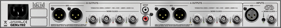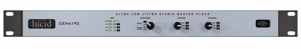 Beim Betrieb im internen Modus erzeugt der GENx192 eine extrem jitterarme Sync-Referenz bei Frequenzen bis zu 192kHz. Seine vierzehn Ausgänge sind in zwei Siebenergruppen aufgeteilt, die jeweils ein unabhängiges Vielfaches der Basisfrequenz erzeugen können. So ist das Gerät in der Lage, zwei verschiedene Frequenzen, wie 96kHz und 192kHz, gleichzeitig zu erzeugen.