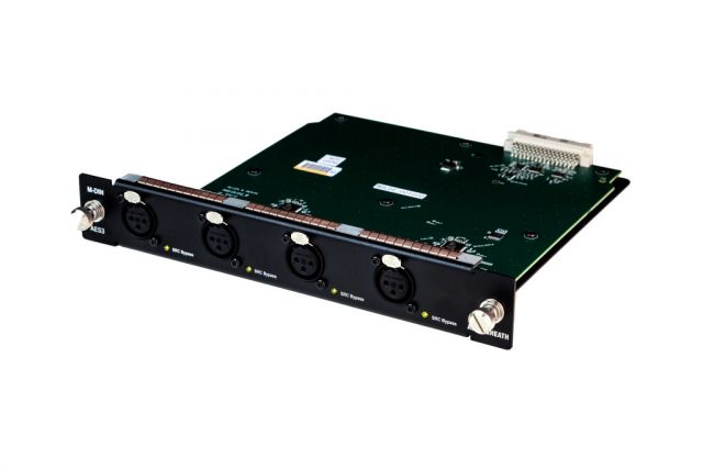 4x Stereo-AES3-Eingänge auf XLR mit SRC (32kHz - 192kHz Abtastrate). Für den 96kHz-Betrieb kann die Sample Rate Conversion umgangen werden.