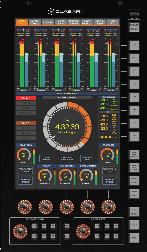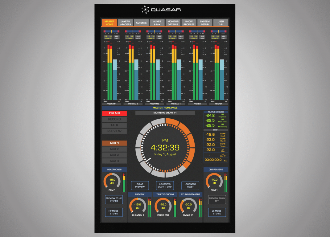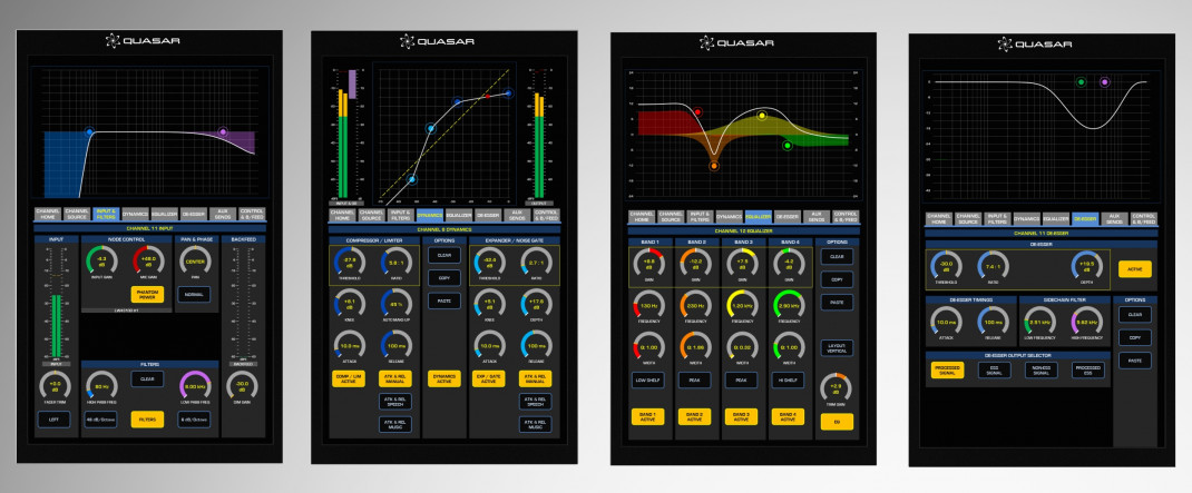 Die Verwaltung der DPS (Filter, Gate, Eq, Kompressor, Limit, Shows, I/O und mehr) wird komplett von diesem Modul aus vorgenommen. Die Ansichten sind kontextabhängig nach den Wünschen des Benutzers (I/O, Routing, Telefon, Insert etc.).
