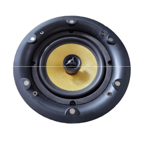 Zwei-Wege-Lautsprecher mit 6,5"-Tieftöner und 1"-Hochtöner, maximale Leistung von 60 W RMS in 8-Ohm-Leitung, mit 100-V-Leistungsabgriffen von 30, 15 & 7,5 W. Ebenfalls erhältlich ist der niederohmige Anschluss von 8 Ohm.Die maximale Deckenstärke beträgt 35 mm.