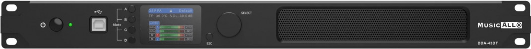 Der Benutzer kann Leistung, Strom, Spannung, Temperatur und Impedanz auf dem Display in Echtzeit überwachen. Die PC-Software MusicAllDSP verfügt über einen RJ45/USB- und einen gemeinsamen seriellen Anschluss und bietet dem Benutzer eine einfache Möglichkeit, mehrere Geräte zu steuern.