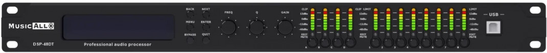 DSP-48DT ist ein 4in 8out FIR DSP-Audioprozessor mit integriertem Hochleistungs-DSP-Prozessor, dynamischem EQ, automatischer linearer FIR-Phase und anderen leistungsstarken Funktionen. Dieser Audioprozessor unterstützt eine Vielzahl von Eingangssignalen: Analog\AES3\Dante Netzwerk-Audio. Standard FIR-Designer in der MusicAllDSP-Software bietet automatische lineare Größe und Phase Funktion, einfach zu optimieren Lautsprecher Parameter.Mit den RJ45-, USB- und RS232-Anschlüssen bietet die PC-Software MusicAllDSP dem Benutzer eine einfache Möglichkeit, mehrere Geräte zu steuern. Der RS232-Anschluss unterstützt die Steuerung durch ein Fremdsystem.