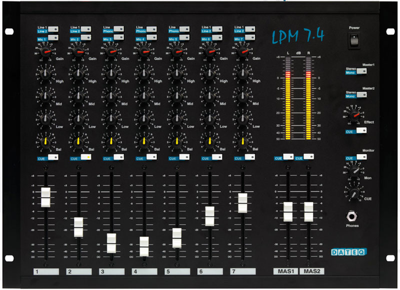 Der modulare Aufbau, die extrem robuste Konstruktion und die Verwendung hochwertiger Komponenten machen das LPM7.4 zu einem hochwertigen Mischpult, das sich hervorragend für den mobilen Einsatz eignet. Selbstverständlich verfügt das LPM7.4 über alle Funktionen eines DATEQ-Mischpults und garantiert so jahrelangen Mixspaß.