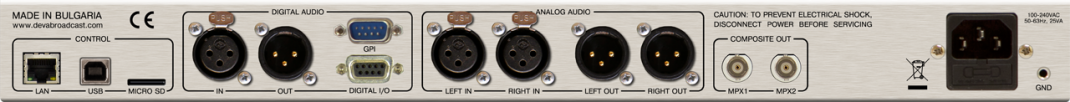 - Analoge L/R-Eingänge und -Ausgänge und zwei unabhängige Composite MPX-Ausgänge