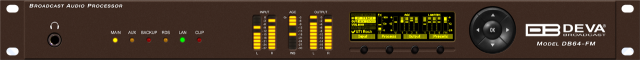 Der DB64-FM ist die ultimative Audio-Processing-Lösung von DEVA, die Ihnen ein unerreichtes Gleichgewicht zwischen Qualität und Preis bietet. Er garantiert perfekte Klarheit des Klangs und eine Vielzahl von Funktionen, die in seiner Klasse konkurrenzlos sind. Wie die anderen Mitglieder der DEVA-Audioprozessorfamilie ist auch dieses Gerät eine hervorragende Mischung aus Zuverlässigkeit und Funktionalität. Das volldigitale DSP-basierte Design, der 4-Band-Prozessor und die fortschrittliche Breitband-AGC sind nur einige der Parameter, die seine Spitzenleistung sicherstellen.Das DB64-FM-Gerät ist für alle LPFMs geeignet und verfügt über einen 4-Band-Prozessor mit Fidelity and Sound Impact System, so dass es keine Kompromisse bei der Klangqualität eingeht. Zu den vielfältigen Funktionen gehören der FM-gesteuerte Verzerrungslimiter, die analogen und digitalen Audioausgänge, zwei unabhängige Composite-MPX-Ausgänge sowie die Fähigkeit, Signalverluste zu erkennen und auf eine Backup-Quelle umzuschalten. Automatische Benachrichtigungen werden bei Eingangs- oder Preset-Änderungen per E-Mail oder SNMP gesendet.