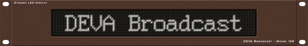 Die dynamische LED-Anzeige Modell 128 ist in der Lage, die allgemeinen Meldungen anzuzeigen und kann für Werbe- und Benachrichtigungszwecke verwendet werden. Die Anzeige kann auch an einen RDS/RBDS-Decoder oder andere Messgeräte angeschlossen werden, um die Messergebnisse anzuzeigen. Dies und der 1,5U-Rackeinbau machen die LED-Anzeige zu einer perfekten Ergänzung in Senderstudios und Kontrollräumen oder in Ausstellungsräumen, wo eine hohe Sichtbarkeit erwünscht ist.Der DEVA LED verfügt über RS232- und USB-Steuerungsschnittstellen. Auf der Rückseite der Displays befinden sich Softbuttons, die eine manuelle Steuerung der mehrstufig einstellbaren Helligkeit ermöglichen. Gesteuert durch eine einfach zu bedienende Software, kann die LED-Anzeige mühelos programmiert werden. Die Software wird kostenlos zur Verfügung gestellt und ermöglicht das Erstellen, Bearbeiten und Überarbeiten von Texten. Die PC-Steuerung ermöglicht die Aktualisierung von benutzervariablen Daten auf einer Anzeige in Echtzeit. Die dynamische LED-Anzeige unterstützt kyrillische und lateinische Alphabete, grundlegende Symbole und Grafiken. Die Software ermöglicht die Erstellung von bis zu 10 vordefinierten Meldungen und 4 zusätzlichen Logos/Bildern. Scrollgeschwindigkeit, Helligkeit, Effekt und Anzeigedauer werden für jede Nachricht individuell eingestellt. Sie können in ihrer Reihenfolge, einzeln oder nach den Wünschen des Benutzers angezeigt werden.