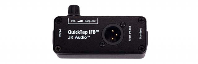 Schließen Sie den QuickTap IFB zwischen Telefon und Hörer an, um einen schnellen Zugriff auf die Audiosignale eines beliebigen Telefonsystems zu erhalten. Beide Audioausgänge enthalten eine gute Mischung aus dem Ton, der von der Telefonleitung kommt, und dem Ton des Hörers, der in das Telefon geht. Jedes Gespräch, das über den Hörer geführt wird, wird über beide Audioausgangsbuchsen gesendet. Sie können auch den Hörer abnehmen und nur den Ton der Gegenseite hören. Der QuickTap IFB funktioniert nicht mit Mobiltelefonen oder Telefonen mit einer Tastatur im Hörer.Erfassen von Telefonleitungstönen für IFB-, ENG- oder AV-Anwendungen