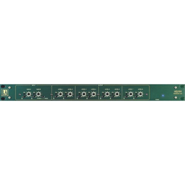 Der DA82 ist ein kompakter Verteilerverstärker, der für 1 bis 8 Mono- oder 2 bis 4 Stereoanwendungen konfiguriert werden kann.