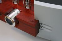 Integrierter Verstärker, 2 x 110W@ 8 Ohm - Klasse A / AB - Hybridtechnologie, 5 Cinch-Eingänge und 2 symmetrische XLR-Eingänge, Vorverstärkerausgang, optionale S/PDIF- und USB-Digitaleingänge (HiDac erforderlich), padouk wood