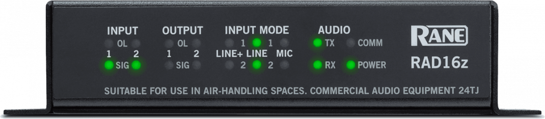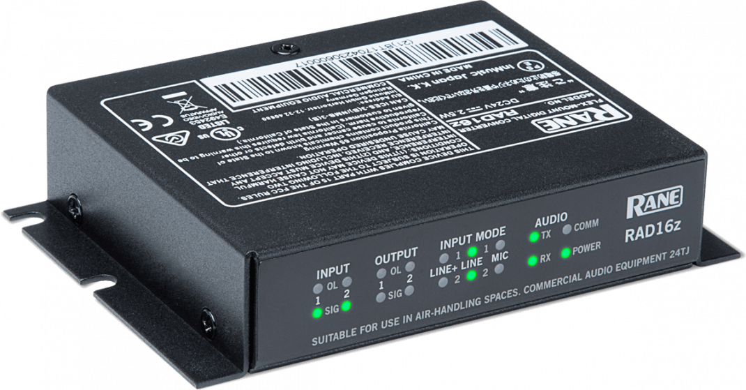 Der RAD16z ist eine Alternative zu Standard-Schaltkästen für unpraktische Bereiche, wie z.B. in Bühnenbodentaschen oder über Decken. Sein Formfaktor ist ein robuster Metallkasten mit flexiblen Oberflächenmontagemöglichkeiten. Der RAD16z hat die Plenum-Zulassung nach UL 2043. Er verfügt über zwei symmetrische Mic/Line-/Line-Plus-Eingänge und zwei symmetrische Line-Ausgänge auf Euroblock-Anschlüssen.Mit Line-Plus kann eine unsymmetrische Stereoquelle an einen einzigen symmetrischen Eingang angeschlossen und mono'ed werden. Die Eingänge sind einzeln per Software auf Mic, Line oder Line-Plus umschaltbar. Die Halogen-Software kann an beiden Eingängen 24V-Phantomspeisung für ein Kondensatormikrofon aktivieren. LEDs zeigen Eingangsmodus, Eingangs- und Ausgangspegel sowie die RAD-Konnektivität zur HAL an.