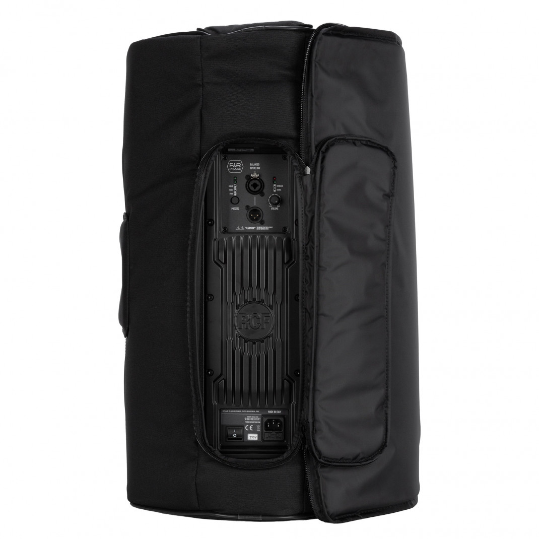 Gepolsterte Hülle für die ART 9 Serie 15“ Modelle. Sie besteht aus strapazierfähigem, wetterfestem Polyester-Außenmaterial, Schaumgummipolsterung und Reißverschlussöffnungen mit Klettverschlüssen. Die Frontabdeckung kann geöffnet und auf einer Seite mit Klettverschluss verschlossen werden. Sie verfügt über mehrere Öffnungen für Griffe, für das hintere Anschlussfeld und für die Masthalterung.MERKMALE