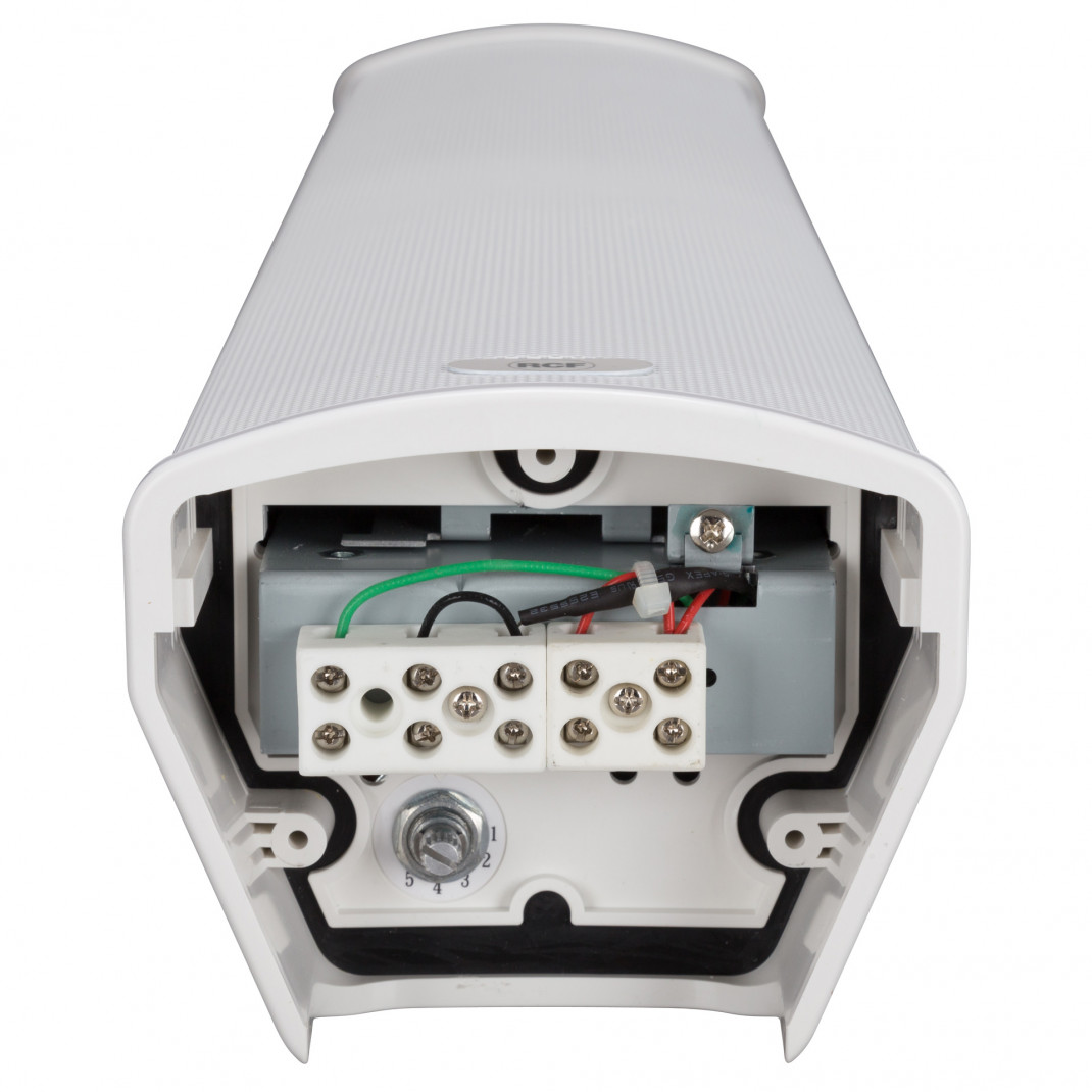 - Wählbare Leistung (100 V): 20 W – 10 W – 5 W – 2,5 W – 1,25 W.