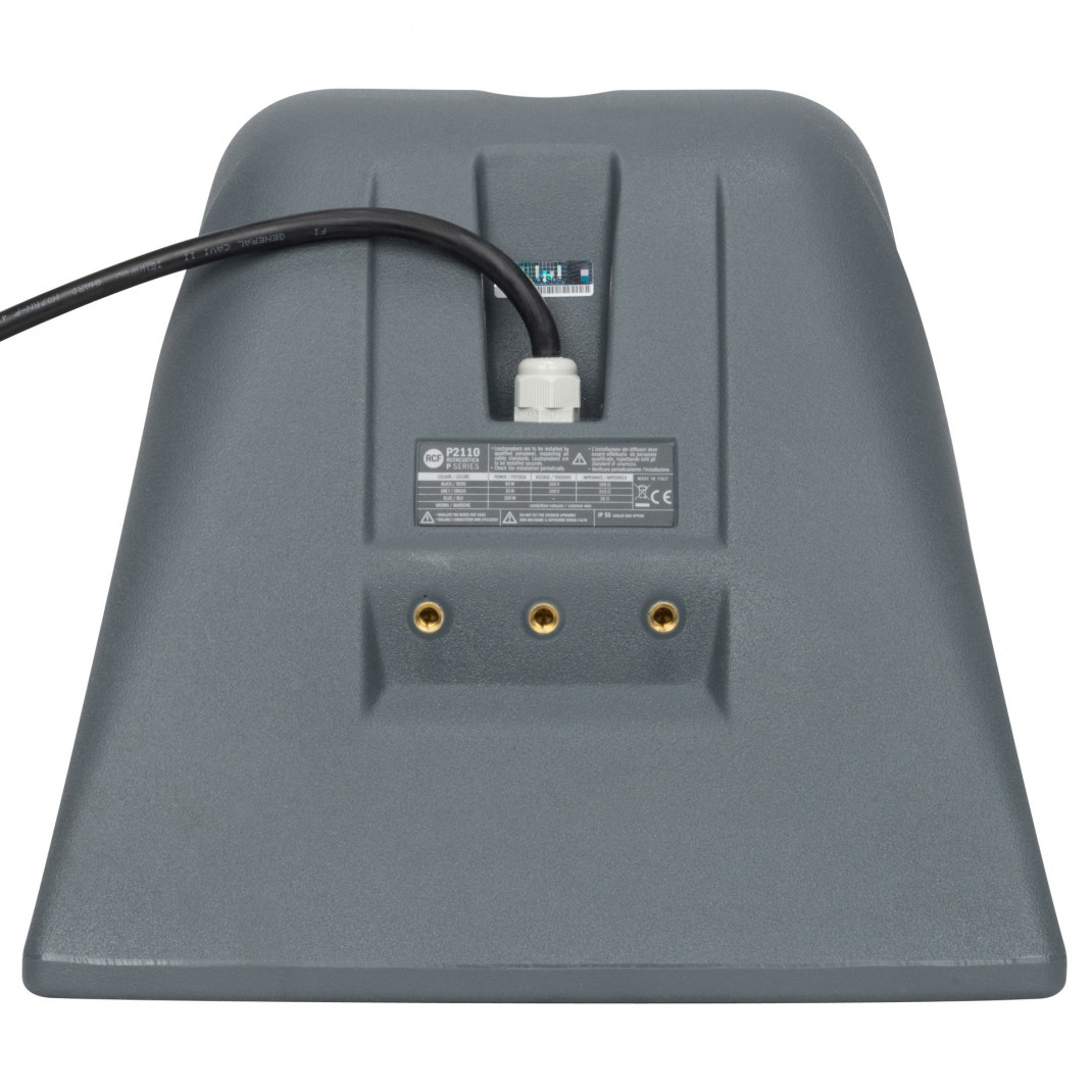 Der P 2110T ist ein wetterfestes, koaxiales Zwei-Wege-Lautsprechersystem mit breitem Abstrahlverhalten für eine Vielzahl professioneller Anwendungen im Innen- und Außenbereich. Der Lautsprecher kann einzeln installiert oder in Array-Konfigurationen gekoppelt werden. Der Tieftonwandler ist ein 10-Zoll-Tieftöner mit einer 2,5-Zoll-Schwingspule. Der Hochtonbereich kombiniert einen 1„-RCF-Präzisions-Kompressionstreiber mit einer 1,5“-Membraneinheit, die zentral im Hals des NF-Treibers montiert ist und auf einem CMD-Horn mit konstanter Richtwirkung für ein gleichmäßiges, breites Abstrahlverhalten sitzt. Der P 2110T verfügt über einen wählbaren Netztransformator für Anwendungen von 70 bis 100 Volt, eine integrierte LICC-Frequenzweiche und einen aktiven Mosfet-Kompressionstreiberschutz (AMCDP). Das einteilige, rotogeformte Gehäuse ist vollständig UV-geschützt und erfüllt die Anforderungen des IP-55-Standards. Im Lieferumfang enthalten sind M10-Messingeinsätze (12 Stück) und ein haltbarer, korrosionsbeständiger U-Bügel aus 316P-Edelstahl mit Abstandshaltern (2x) für die 90°-Montage. Die Aluminium-Gitterabdeckung ist pulverbeschichtet mit wasserabweisendem Trägermaterial und einer drehbaren Logoplatte.MERKMALE