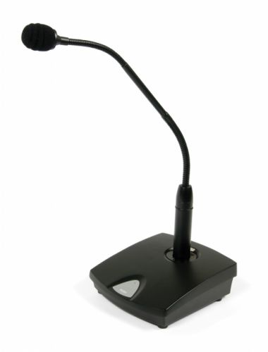 Die CMB1 Gooseneck Mic Base von Samson hat einen gewichteten Sockel mit einer XLR-Buchse. Der programmierbare Schalter kann für Push-to-Talk oder Push-to-Mute eingestellt werden. Eine LED-Anzeige leuchtet, wenn das Mikrofon aktiv ist.