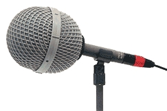 Robuster, aus zwei trennbaren Halbschalen aufgebauter, hochwirksamer Windschutzkorb für ein Standardmikrofon der Colette-Serie.