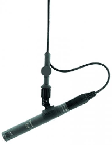 Diese Kabel-Hängevorrichtung nimmt ein Mikrofon in nahezu beliebiger horizontaler und vertikaler Winkelstellung auf.Die Positionierung kann durch eine Nylon-Schnur erfolgen, die durch die Kabelschlaufe gehen kann.