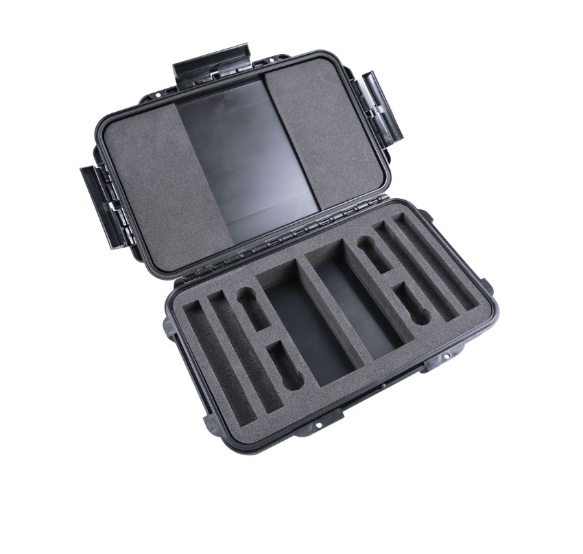 Wasserdichter, robuster Kunststoffkoffer für bis zu 4 Mikrofone der Länge 155 mm