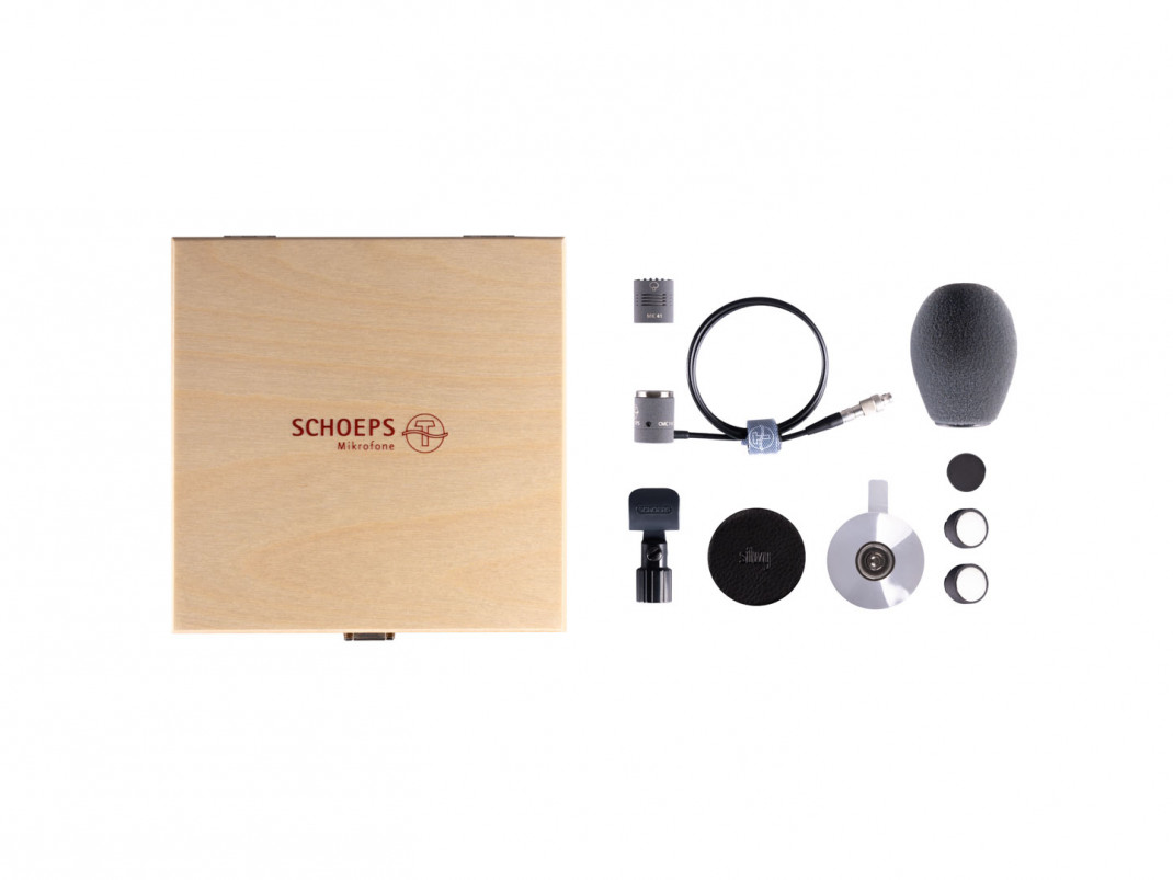 Set besteht aus MK 41, CMC 1 KV (0,5m Kabel, Lemo-3pin Sound Devices), B 5 D, Etui für CCM/CMC 1 L, Magnet-Pad, 5 cm, Winkelstück, magnetisch, 30°, Winkelstück, magnetisch, 45°, Scheibenmagnet 20 mm, Saugnapf Ø 50 mm mit Magnet, SG 20