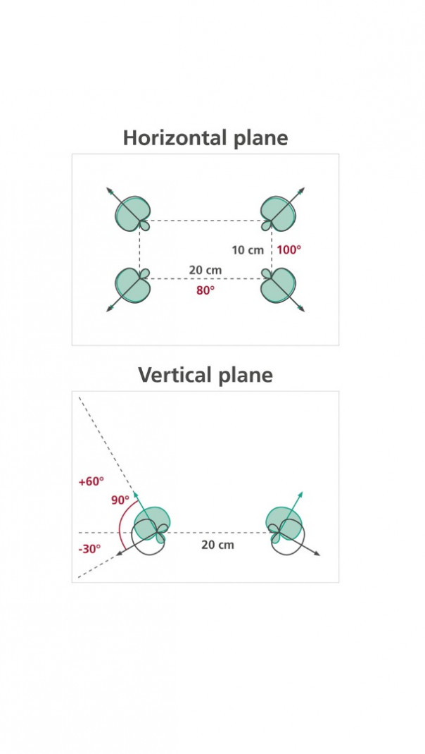 - Eigenschaften der OCT-Technik: Natürlicher Raumklang, ausgeglichene Abbildung, große Stabilität, hohe Kanaltrennung, hohe Dekorrelation im Diffusfeld, hohe Direktsignalunterdrückung in den Surround- und Höhenkanälen