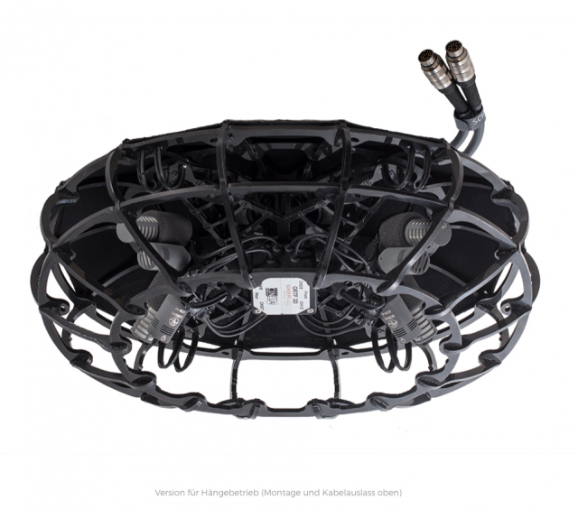 Der Windkorb ist normalerweise für hängenden Betrieb ausgelegt, so wie er im Stadion verwendet wird. Es ist eine eigene Variante für Stativbetrieb erhältlich.