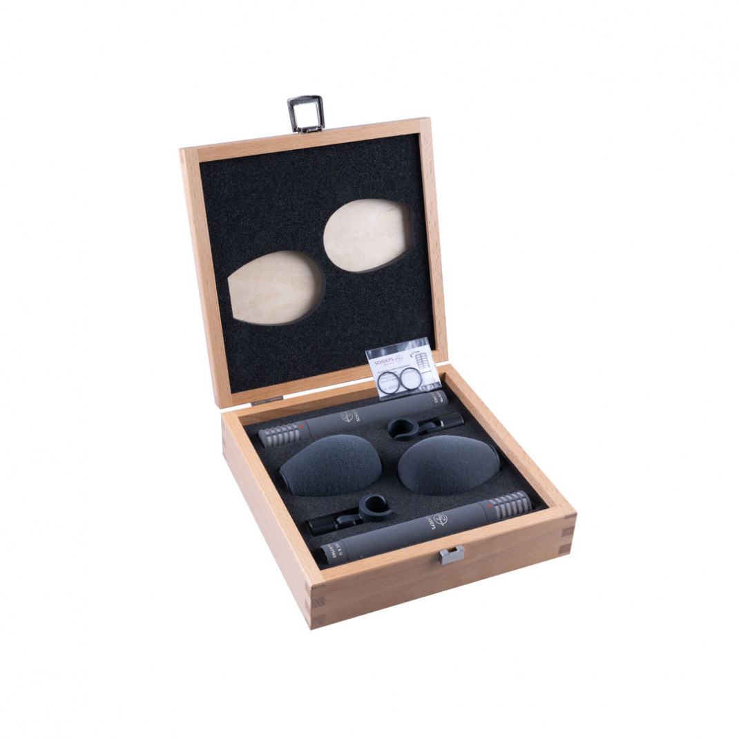 SCHOEPS bietet die Bestseller der modularen Mikrofonserie "Colette" auch als Paare zum Preis eines Sets an.In einem gemeinsamen Holzetui befinden sich zwei Mikrofone, bestehend aus gepaarten Mikrofonkapseln MK und Mikrofonverstärkern CMC 6, zwei Stativklammern SG 20 sowie Poppschutz B 5 oder B 5 D.