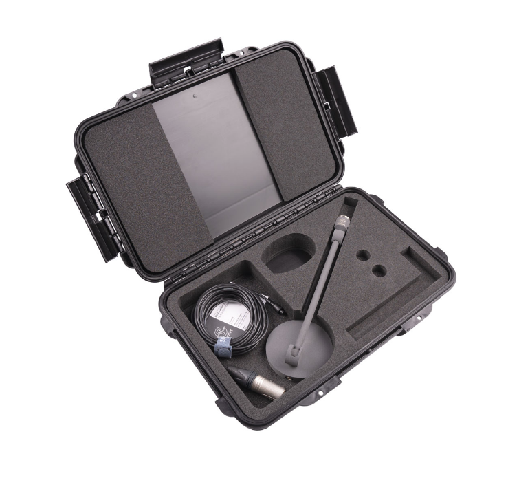 Tischständer für Colette mit integriertem Mikrofonverstärker, mit Koffer. Set enthält TR 200 EL, Mikrofonkoffer für Tischständer