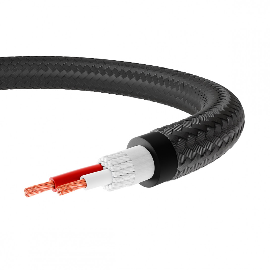 Das vormontierte Lautsprecherkabel der BLACK Serie verkörpert die Balance zwischen Leistungund Verarbeitungsqualität. Es wurde entwickelt, um Ihren Verstärker