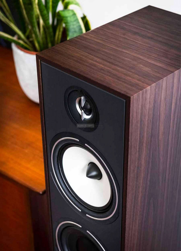 Dieser elegante 3-Wege-4-Treiber-Standlautsprecher verfügt über einen 25-mm-EFS-Seidenkalotten-Hochtöner, einen 16-cm-Mitteltöner mit völlig neu gestaltetem Profil und zwei neue 16-cm-Glasfaser-Tieftöner.