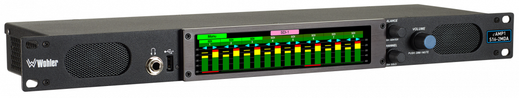 - Gleichzeitige Pegelmessung von 16 de-embedded Audiokanälen von den beiden SDI-Eingängen, AES oder analogen Quellen