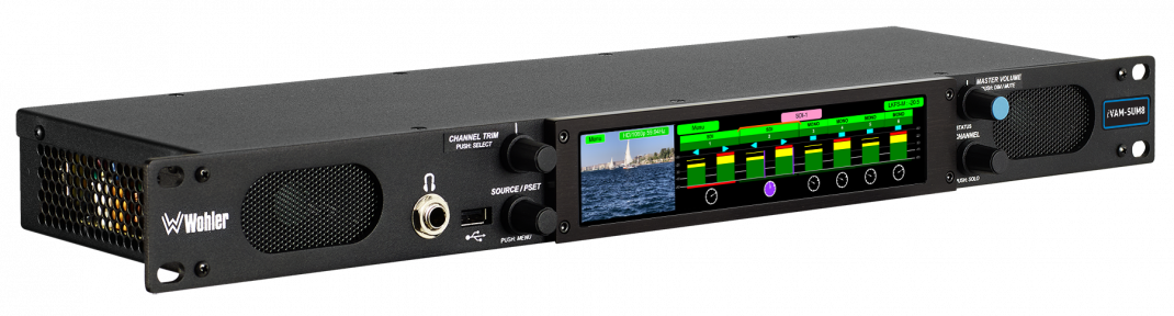 1RU single 7" touchscreen, 8 channel Dual input 3G/HD-SD/SDI audio Monitor with video. Includes a pair of analog inputs and outputs on XLR. OPT-Dolby N/A for iVAM-SUM8