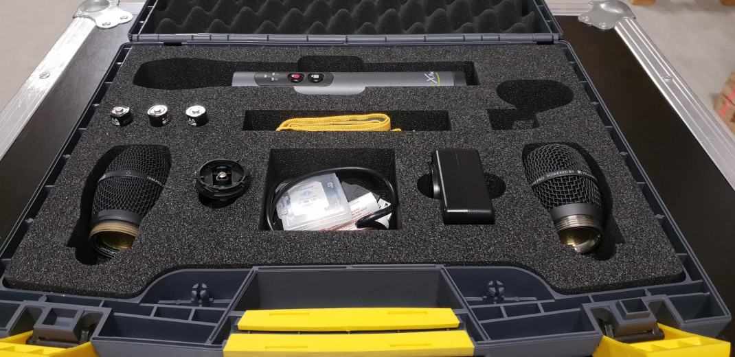 Ein Set bestehend aus einem Mikrofonkörper mit diversem Zubehör und zwei Kapseln :
