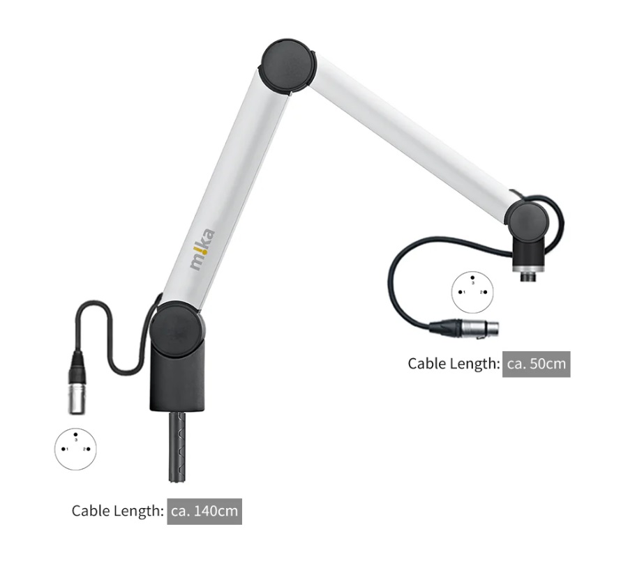 m!ka Mic Arm XS aluminum with installed XLR-3 connectors on upper + lower end of cable