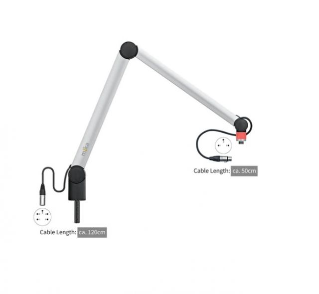 VORFUHRGERATE, NEUWERTIGER ZUSTAND, GARANTIE 12 MONATE - MIKA Microphone Arm Silver 80cm (40x40), built-in 1,2m cable, with OnAir Lamp, with XLR connectors installed