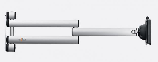 Der m!ka Monitorarm in XL-Größe ist die perfekte Wahl für alle, die mit großen Entfernungen zwischen dem Montagepunkt des Monitorarms und dem Arbeitsplatz des Bedieners zu tun haben. Als Langstreckenlösung überbrückt er Abstände von bis zu 70,5 cm. Damit ist der m!ka Monitorarm XL eine gute Wahl, um große Tische oder andere große Aufbauten mit Monitoren auszustatten.Mit dem m!ka Monitorarm XL können Sie einen Monitor mit einem Gewicht von bis zu 10 kg befestigen. Ausgestattet mit einem QuickFix-Adapter für VESA75- und VESA100-Halterungen wird der Monitor durch die richtige Justierung mit nur wenigen Schrauben entsprechend seinem Gewicht in jeder Position sicher befestigt, in die Sie ihn ziehen.