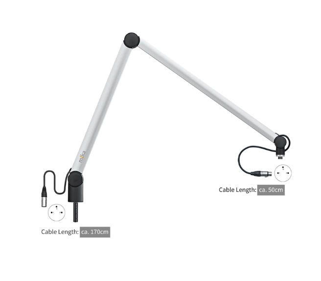 MIKA Microphone Arm Silver XL 100cm (50x50), built-in 1,2m cable, with XLR connectors installed