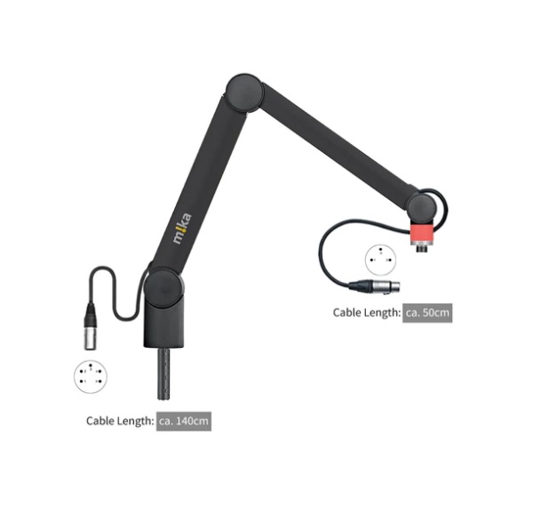 m!ka Mic Arm XS with OnAir signal, installed XLR connectors, black