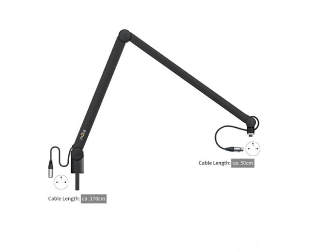 m!ka Mic Arm XL without indicator, installed XLR connectors, black