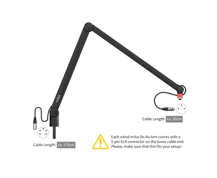 m!ka Mic Arm XL with OnAir signal, installed XLR connectors, black