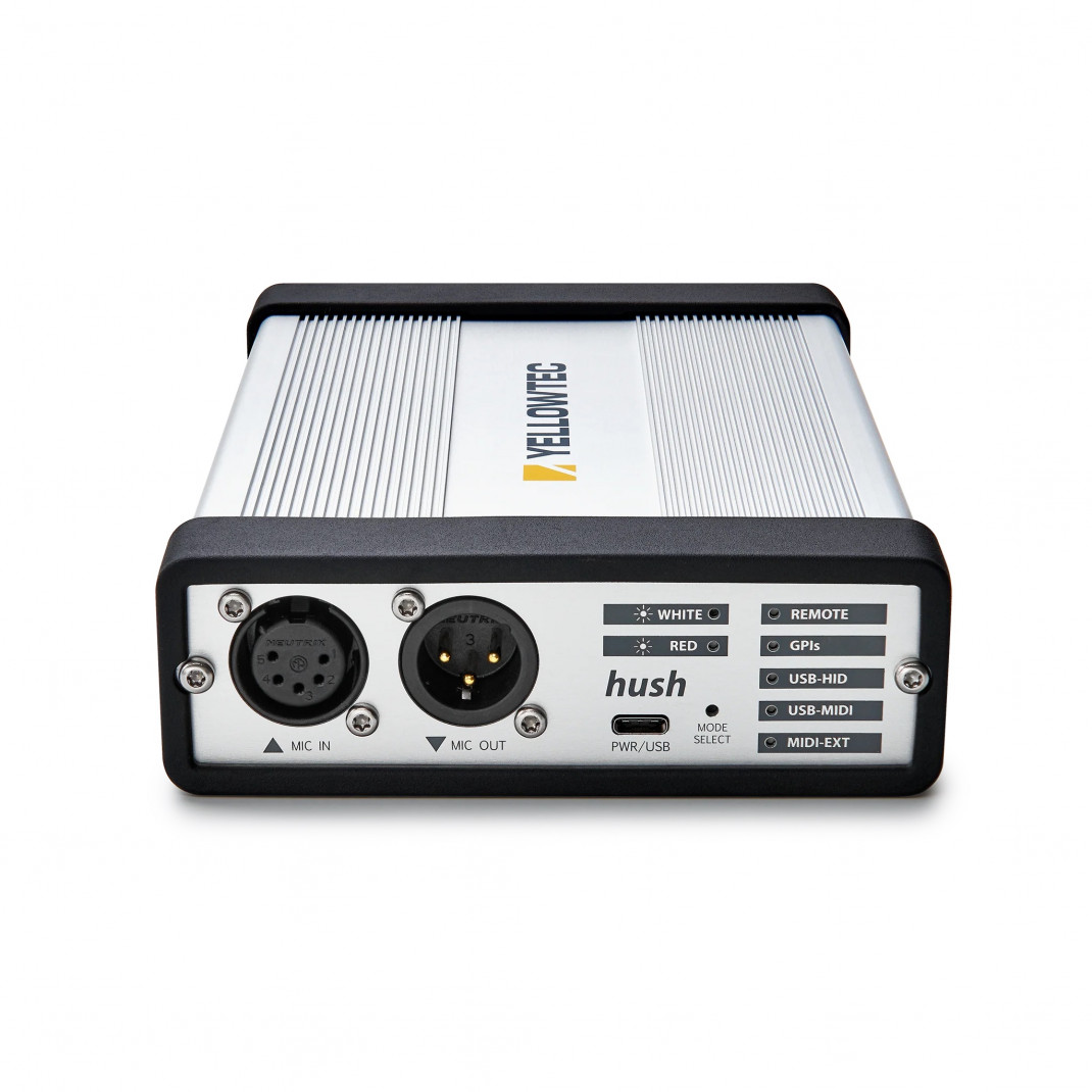 hush ist ein praktischer Controller für Ihre OnAir-Signalisierung. Er ermöglicht eine einfache Kontrolle über die LED-Signale Ihres OnAir-Anzeigers. Sein Plug'n'Play-Konzept ermöglicht eine schnelle Handhabung. Das für m!ka entwickelte hush passt perfekt auf den XLR-5-Stecker am unteren Ende des Kabels Ihres m!ka Mic Arm OnAir. Einfach Plug'n'Play! Schon haben Sie die Kontrolle über Ihre LED OnAir-Signalisierung. Nutze die zweifarbige LED-Anzeige des m!ka Mic Arm mit hush. Ihr Mikrofonsignal wird unbearbeitet durchgeschleift. Wenn Sie eine OnAir-Steuerung mit Vorverstärker- und Mute-Funktion suchen, sollten Sie sich den hush+ OnAir Controller ansehen.Dank der fünf verschiedenen Modi passt hush zu fast jedem Setup. Direkt am Gerät oder in der dazugehörigen hush App können Sie Ihren bevorzugten Modus zur Steuerung von hush auswählen. Wählen Sie zwischen der hush Remote, GPIs, USB-HID oder MIDI (USB / Ext.). Ganz gleich, was Sie brauchen, hush unterstützt Sie bei der Steuerung! Weitere Details zu den verschiedenen Modi finden Sie im hush Briefing Book.