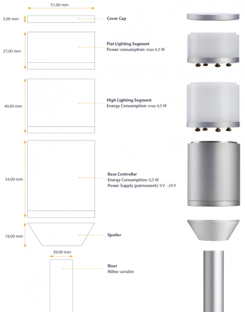 - Abmessungen: ø51mm x 40mm | Höhe des LED-Signals: 35mm