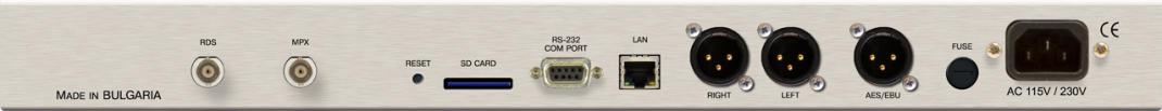 Avec l'ajout des encodeurs stéréo et RDS optionnels, le DB9000-RX devient un outil complet pour la rediffusion audio. Le processeur de l'encodeur stéréo permet de générer un signal MPX composite entièrement numérique avec une excellente réparation G/D (MPX Stéréo). Grâce au port RS-232, le DB9000-RX peut piloter un équipement via le port série depuis un flux TCP (convertiseur pour une télécommande via Internet vers un port série). Le DB9000-RX peut également être géré via n'importe quel navigateur Web.