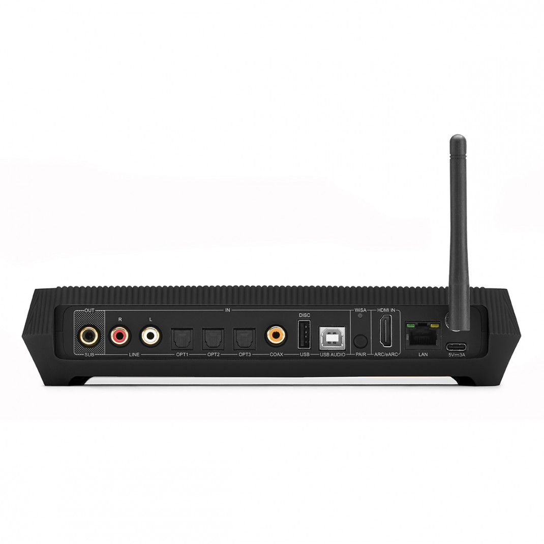 La transmission audio vers les enceintes s’effectue sans fil via la technologie WiSA, garantissant une diffusion haute résolution stable et sans latence perceptible.